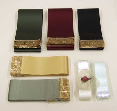 Alapanyaguk keményített szatén. Méretek 3-4-5 cm - kiszerelés 10m. A 7-10-14-25 cm-es szalagok 25 m-es tekercsekben készülnek.